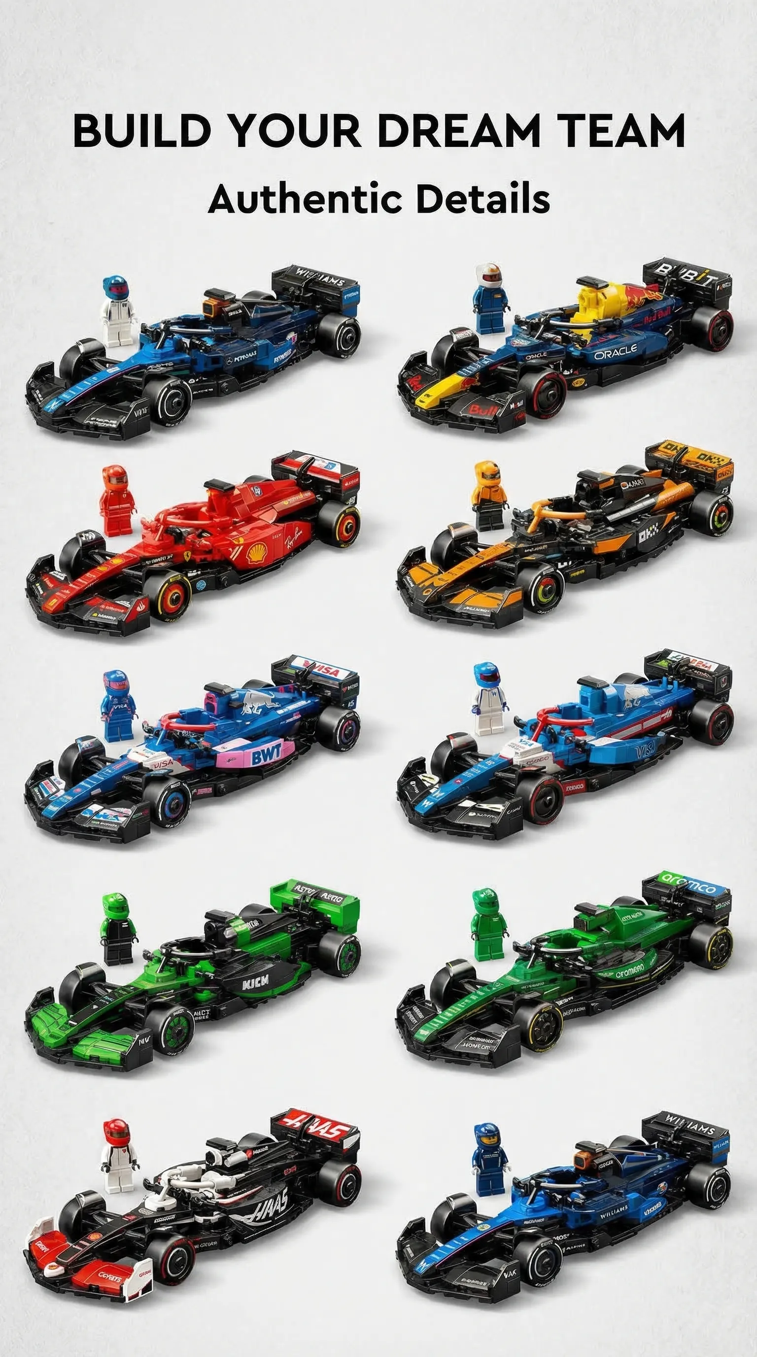 Formula 1 car building blocks (10 designs)77242-77251